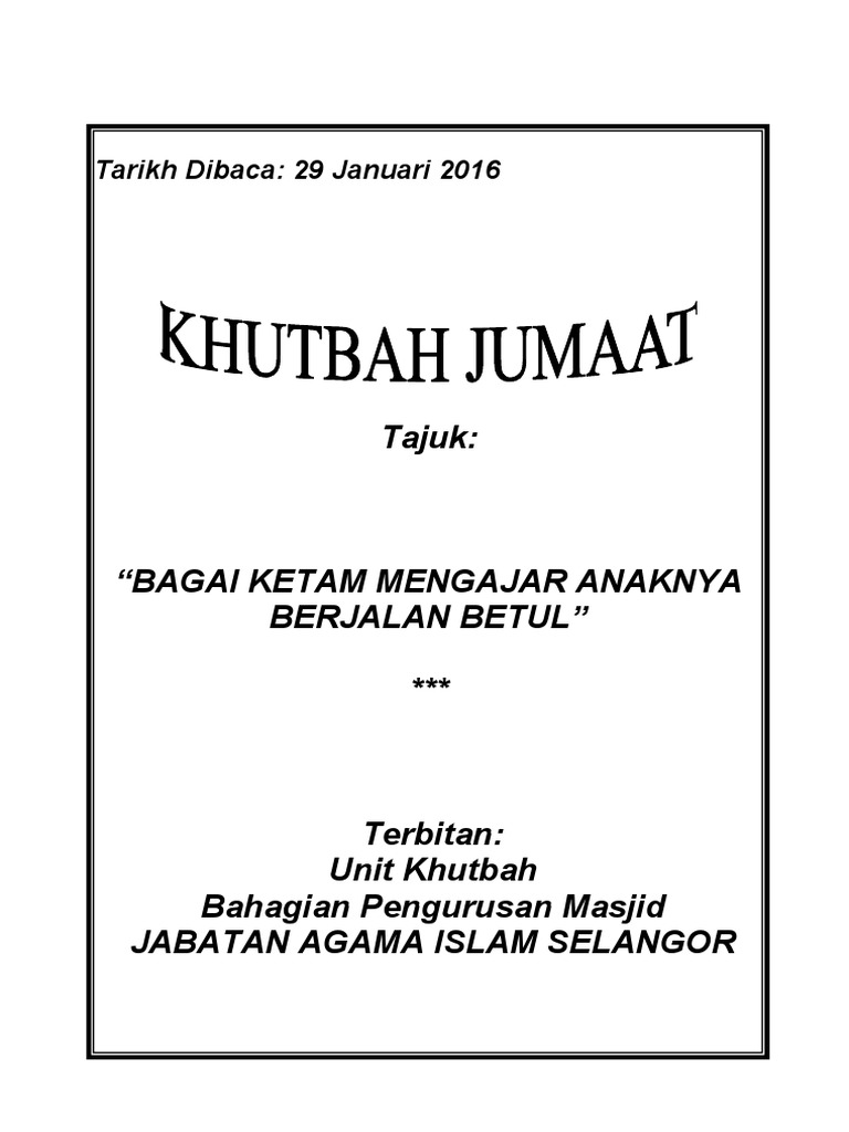 Orang tua pasti mau memberikan apa yang baik kepada anaknya. Bagai ketam mengajar anaknya berjalan betul. Bagai menatang minyak yang penuh. Khutbah jumaat 29 jan 2016 : Ke tengah boleh ke tepi boleh.