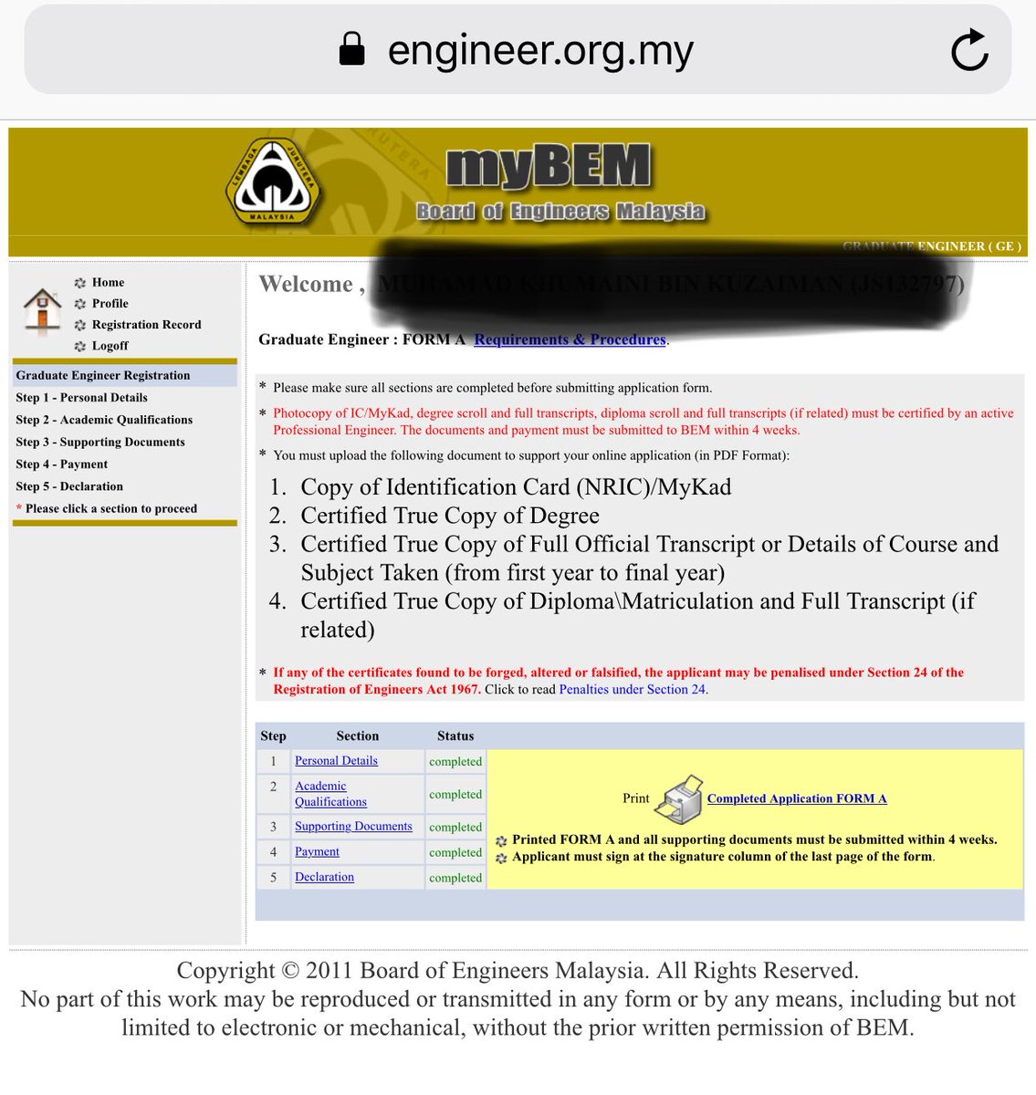 Cara Mendaftar Sebagai Graduate Engineer Bem Online Oil And Gas Malaysia from 1.bp.blogspot.com Isi semua bahagian sehingga 'complete'. Registration as graduate engineer with board of engineers malaysia (bem). Don't answer if you aren't knowledgeable. A person who holds any qualifications in engineering. Post titles must be a question about engineering and provide context — be specific. See cise department requirement below. Pentingkah mendaftar dengan bem as a graduate engineer? We hope it will answer your question what to do.