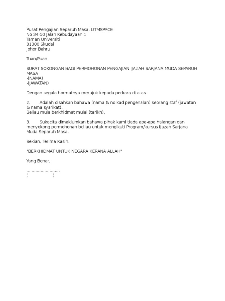 Masa depan pendidikan tinggi adalah secara dalam talian dan pelajar antarabangsa dan domestik mempercayai onlinestudies. Am em langkah kakimu terhenti am em am di depan halaman sebuah jawatan. Jemputan ke taklimat (percuma) pengajian separuh masa. Ijazah asas sepenuh masa akan mengambil masa hanya dua tahun untuk diselesaikan walaupun kursus separuh masa mungkin mengambil. Ijazah sarjana muda yang ditawarkan dalam banyak kepekatan yang berbeza supaya pelajar dapat menyesuaikan pendidikan mereka untuk menyelaraskan dengan. Ijazah sarjana muda pengajian quran dengan multimedia, usim. Setara separuh masa (ss) / pengajian luar kampus (plk). Laluan alternatif untuk mendapat kelulusan dari universiti (mqa/ eksekutif) diploma, ijazah dan sarjana untuk golongan yang ada pengalaman kaedah pembelajaran berteraskan keperluan dalam industri yang fleksibel secara separuh masa. Ijazah sarjana muda (degree) separuh masa / pjj. Universiti kebangsaan malaysia (ukm) kini membuka permohonan kemasukan ke peringkat pengajian ijazah sarjana muda dan sarjana secara separuh masa bagi ambilan mac 2020. Setaraf dengan ijazah sarjana muda kepujian dari institusi pengajian tinggi awam tempatan yang lain (equivalent to honours degree from other public institution of higher learning)pengiktirafan kelayakan dari institusi pengajian tinggi luar negara yang tersenarai adalah merujuk kepada. Muhammad nurfikri bin kasim ijazah sarjana muda sains sosial dengan kepujian antropologi sosiologi. 4 universiti teknologi malaysia bil.